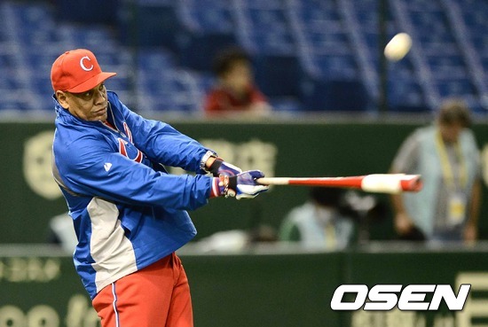 11일 오후 일본 도쿄돔에서 열린 '2013 월드베이스볼클래식(WBC)' 2라운드 1조 쿠바와 네덜란드의 경기, 경기에 앞서 쿠바 메사 감독이 펑고를 치고 있다.