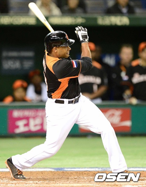 11일 오후 일본 도쿄돔에서 열린 '2013 월드베이스볼클래식(WBC)' 2라운드 1조 쿠바와 네덜란드의 경기, 3회말 2사 2,3루에서 네덜란드 스미스가 적시타를 치고 있다.