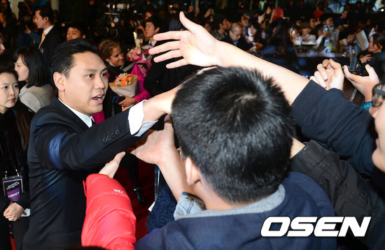 11일 오후 서울 영등포 타임스퀘어에서 진행된 영화 '지.아이.조2' 레드카펫 및 VIP 시사회 행사에서 존 추 감독이 팬들과 악수를 나누고 있다.