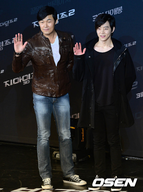 11일 오후 서울 영등포 타임스퀘어에서 열린 영화 '지.아이.조2' 레드카펫 행사에서 박성웅 박유환이 포토타임을 갖고 있다.