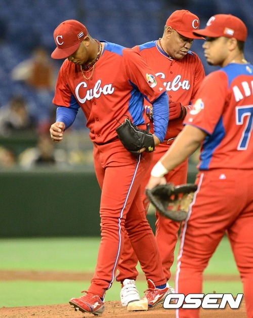 11일 오후 일본 도쿄돔에서 열린 '2013 월드베이스볼클래식(WBC)' 2라운드 1조 쿠바와 네덜란드의 경기, 4회말 2사 쿠바 선발투수 가르시아가 마운드를 내려가고 있다.