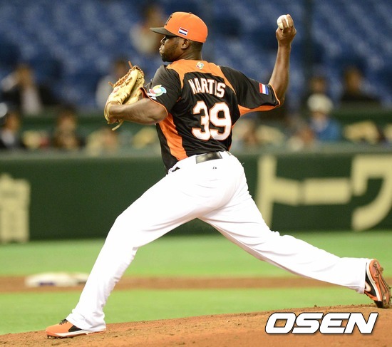 11일 오후 일본 도쿄돔에서 열린 '2013 월드베이스볼클래식(WBC)' 2라운드 1조 쿠바와 네덜란드의 경기, 4회초 2사 1루에서 네덜란드 마티스가 힘차게 공을 던지고 있다.