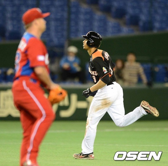11일 오후 일본 도쿄돔에서 열린 '2013 월드베이스볼클래식(WBC)' 2라운드 1조 쿠바와 네덜란드의 경기, 8회말 2사 1루에서 네덜란드 시몬스가 동점 투런 홈런을 치고 그라운드를 돌고 있다.
