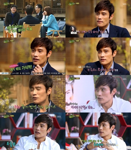 이뿐 아니라 이병헌의 자신의 트레이드마크가 된 건치미소에 대해 "내가 봐도 가식적이다"라고 재치 있게 말했고 바람둥이라는 소문에 대해 "기준이 뭐냐"며 "추호의 부끄러움이 없다"고 당당하게 말했고 "내 나이 44세이고, 내 또래가 만나는 만큼은 연애했다"고 솔직하게 전했다.