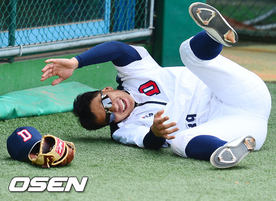 경기 전 두산 이종욱이 몸을 풀던 중 고통을 호소하고 있다.