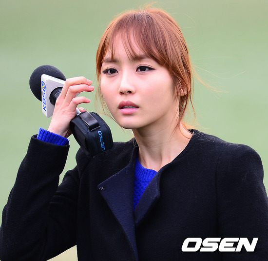 경기를 마치고 인터뷰를 기다리는 KBS N 윤태진 아나운서가 머리카락을 넘기고 있다. / rumi@osen.co.kr