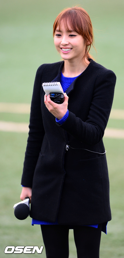 경기를 마치고 인터뷰를 기다리는 KBS N 윤태진 아나운서가 미소짓고 있다. / rumi@osen.co.kr
