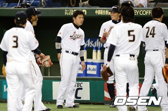 12일 오후 일본 도쿄돔에서 열린 '2013 월드베이스볼클래식(WBC)' 2라운드 1조 일본과 네덜란드의 경기, 경기에 앞서 일본 선수들이 훈련을 마치고 덕아웃으로 가고 있다.