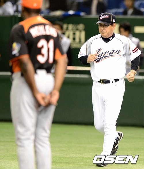 12일 오후 일본 도쿄돔에서 열린 '2013 월드베이스볼클래식(WBC)' 2라운드 1조 일본과 네덜란드의 경기, 경기에 앞서 야마모토 감독이 그라운드로 향하고 있다.