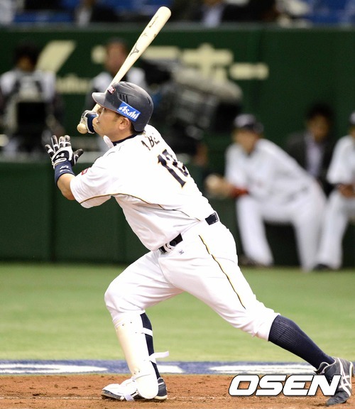 12일 오후 일본 도쿄돔에서 열린 '2013 월드베이스볼클래식(WBC)' 2라운드 1조 일본과 네덜란드의 경기, 2회말 2사 1,3루에서 일본 아베가 스리런 홈런을 날리고 있다.