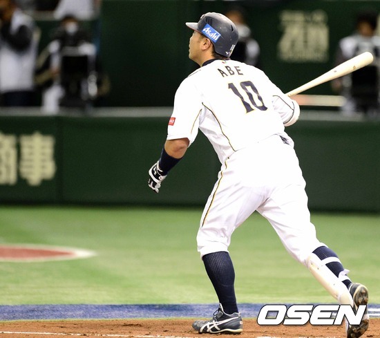 12일 오후 일본 도쿄돔에서 열린 '2013 월드베이스볼클래식(WBC)' 2라운드 1조 일본과 네덜란드의 경기, 2회말 2사 1,3루에서 일본 아베가 스리런 홈런을 날리고 있다.