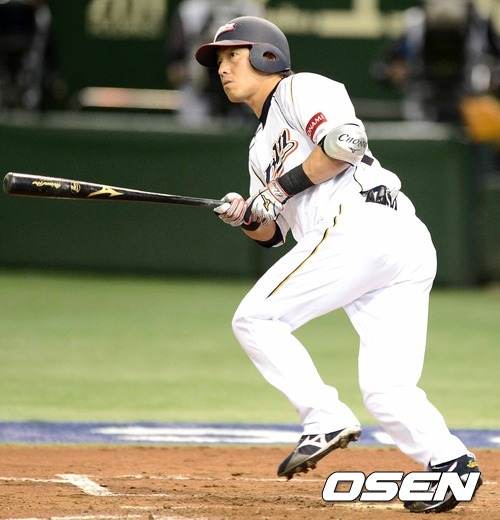 12일 오후 일본 도쿄돔에서 열린 '2013 월드베이스볼클래식(WBC)' 2라운드 1조 일본과 네덜란드의 경기, 2회말 1사 만루에서 일본 조노가 3타점 적시 2루타를 치고 있다.