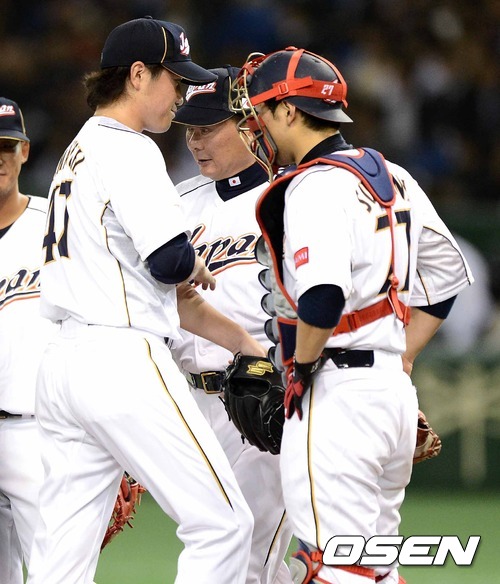 12일 오후 일본 도쿄돔에서 열린 '2013 월드베이스볼클래식(WBC)' 2라운드 1조 일본과 네덜란드의 경기, 8회초 2사 1루에서 일본 야마구치가 마운드를 내려가고 있다.