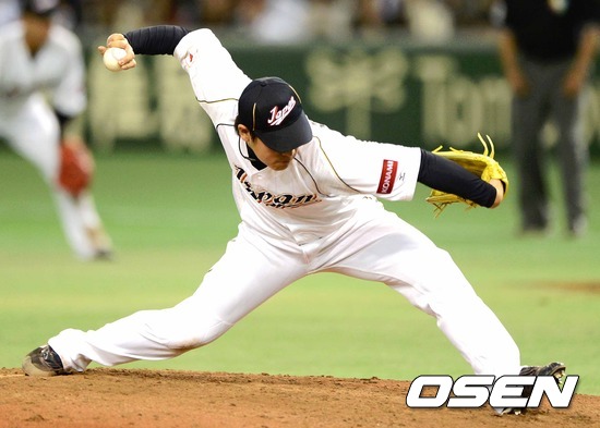 12일 오후 일본 도쿄돔에서 열린 '2013 월드베이스볼클래식(WBC)' 2라운드 1조 일본과 네덜란드의 경기, 9회초 무사에서 일본 마키타가 힘차게 공을 던지고 있다.
