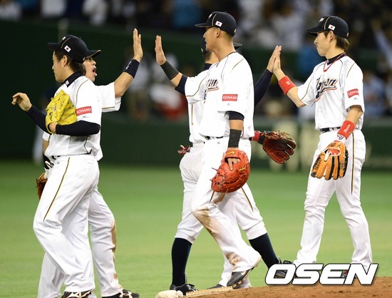 경기 종료 후 일본 선수들이 승리의 기쁨을 나누고 있다./sunday@osen.co.kr