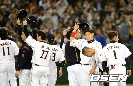 경기 종료 후 일본 선수들이 관중석을 향해 인사를 하고 있다./sunday@osen.co.kr