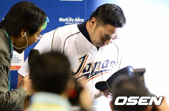 경기 종료 후 일본 아베가 관중석을 향해 인사를 하고 있다./sunday@osen.co.kr