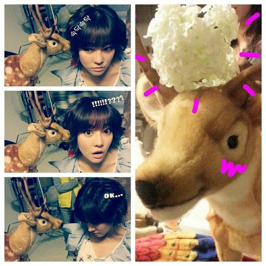그룹 레인보우의 고우리가 사슴인형과 함께 노는 자신의 모습이 담긴 사진을 올렸다.