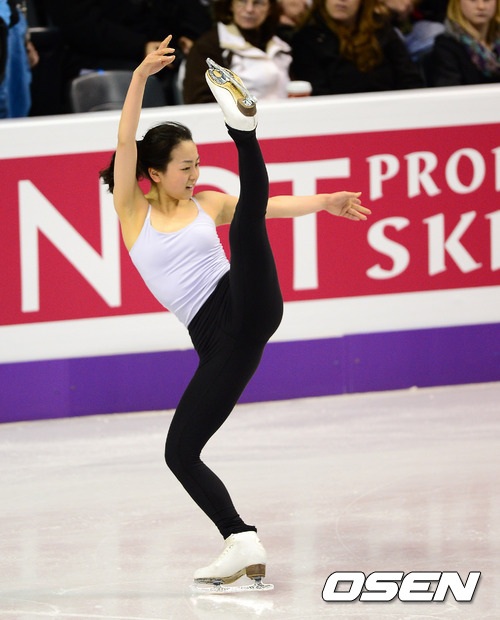 아사다 마오가 13일(한국시각) 2013 국제빙상경기연맹(ISU) 세계피겨선수권대회가 열리는 캐나다 몬타리오주 런던 버드와이저 가든스에서 공식훈련을 하고 있다.