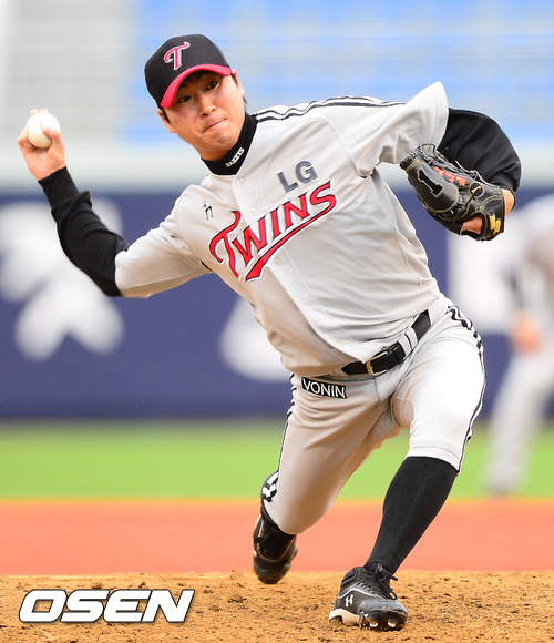 LG 선발 우규민이 힘차게 공을 뿌리고 있다.