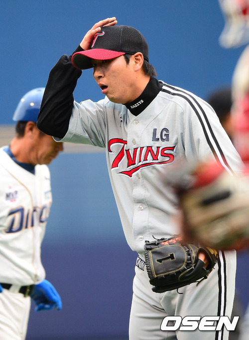3회를 마친 LG 선발 우규민이 덕아웃으로 향하고 있다.