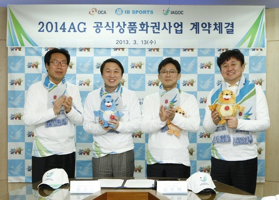 이에 IB스포츠는 이번계약을 통해 대회마크를 활용한 의류, 봉제, 문구, 완구류 등 총 100여개의 2014인천 아시안게임 공식상품을 개발, 제작, 판매할 수 있게 됐다.