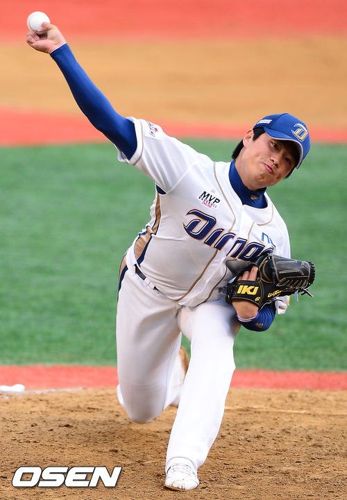 5회초 마운드에 오른 NC 윤형배가 힘차게 공을 뿌리고 있다.