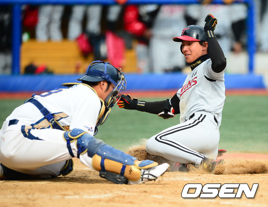9회초 1사 주자 1,2루 LG 이대형의 좌익수 앞 1루타때 좌익수 실책이 겹치면서 주자 모두 홈을 밟고 타격을 한 이대형도 홈으로 바로 몸을 던졌지만 홈에서 태그아웃을 당하고 있다.