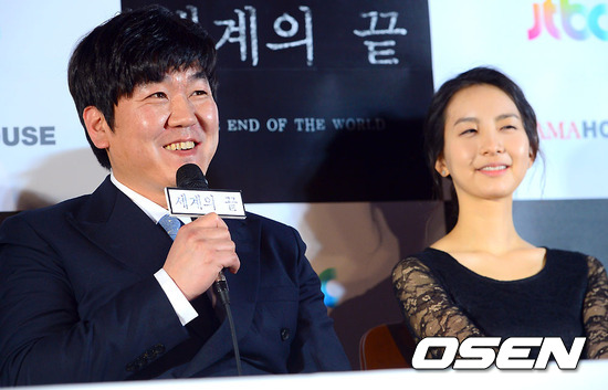 13일 오후 서울 동대문 메가박스에서 진행된 JTBC 새 주말특별기획 드라마 ‘세계의 끝’ 제작발표회에 윤제문이 질문에 답하고 있다.