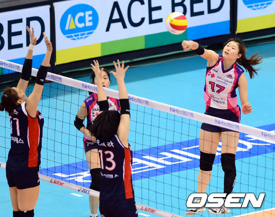 13일 오후 대전 충무체육관에서 열린 '2012-2013 NH농협 V-리그' 여자부 인삼공사와 흥국생명의 경기 1세트 흥국생명 이진화가 공격을 시도하고 있다.