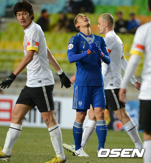 13일 오후 경기 수원월드컵경기장에서 열린 AFC 챔피언스리그(ACL) 조별 예선 H조 수원 삼성과 귀저우 런허(중국)의 경기, 전반 수원 조동건이 슛 찬스를 놓친후 아쉬워하고 있다