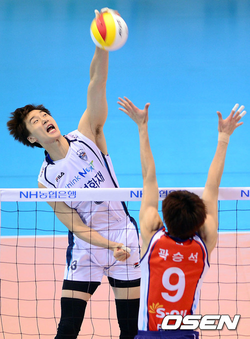 13일 오후 대전 충무체육관에서 열린 '2012-2013 NH농협 V-리그' 남자부 삼성화재와 대한항공의 경기 1세트 박철우가 공격을 시도하고 있다.