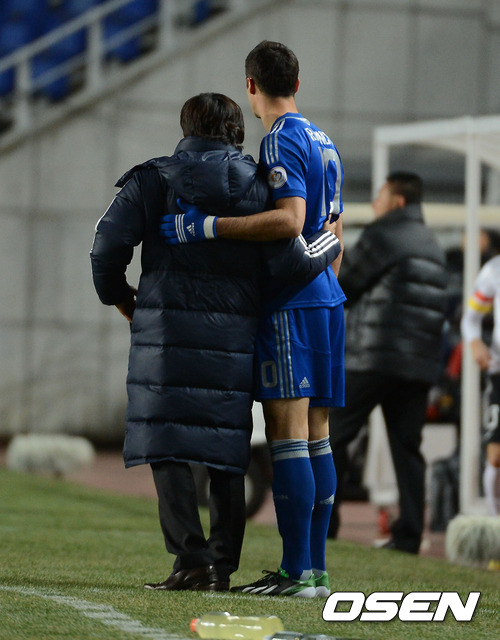 13일 오후 경기 수원월드컵경기장에서 열린 AFC 챔피언스리그(ACL) 조별 예선 H조 수원 삼성과 귀저우 런허(중국)의 경기, 후반 수원 서정원 감독이 교체되는 라돈치치와 이야기를 나누고 있다