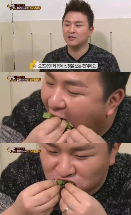 허각은 13일 오후 방송된 SBS ‘한밤의 TV 연예’에서 “요즘들어 건강식을 챙겨 먹는다”며 우렁 쌈밥과 흑돼지를 소개했다.