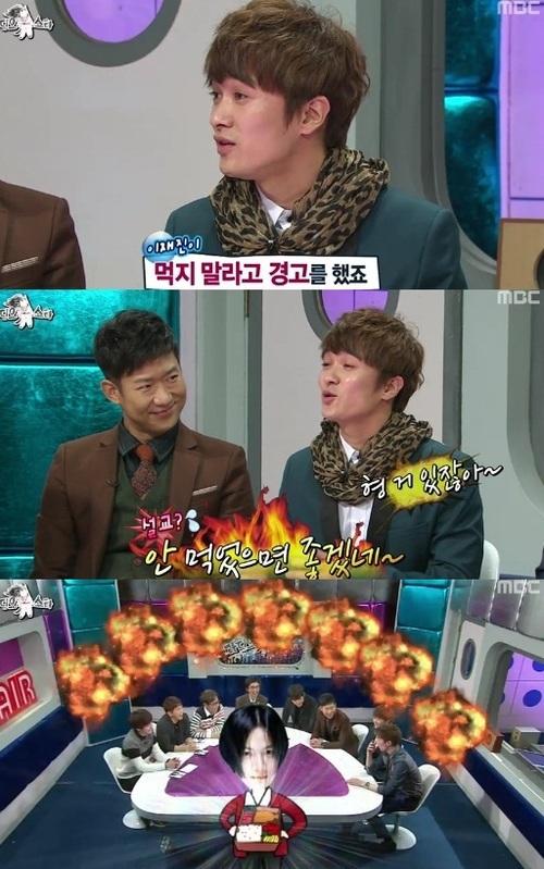 이어 김재덕은 “은지원이 이재진의 도시락을 뺏어 먹은 적이 있다. 은지원이 짓궂은 면이 있어 하지 말라는 말에도 또 한 번 뺏어 먹었고, 이재진이 도시락을 쓰레기통에 던져버렸다”며 “분위기가 냉각됐지만 은지원이 자신의 도시락을 주는 것으로 마무리 됐다”고 불화가 있었던 사실을 전했다.