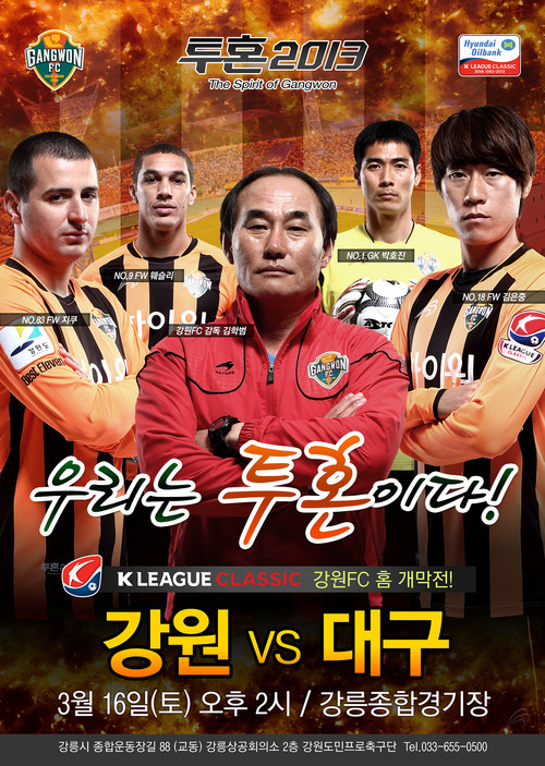 강원 FC가 오는 16일 오후 2시 강릉종합경기장에서 K리그 클래식 3라운드 대구 FC와 홈경기를 갖는다. 이번 대구전은 올 시즌 처음으로 홈팬들과 만나는 자리다.