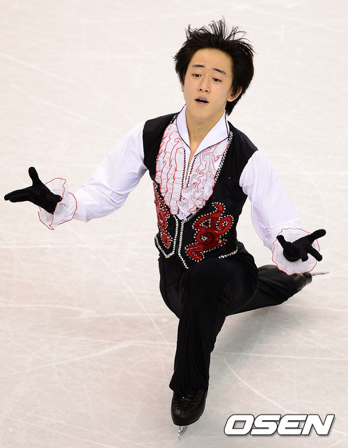14일(한국시각) 오전 캐나다 온타리오주 런던 버드와이저 가든스에서 열린 2013 국제빙상경기연맹(ISU) 세계피겨선수권대회에서 남자 싱글 김진서가 쇼트 프로그램 연기를 펼치고 있다.