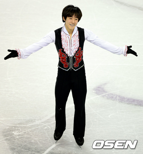 14일(한국시각) 오전 캐나다 온타리오주 런던 버드와이저 가든스에서 열린 2013 국제빙상경기연맹(ISU) 세계피겨선수권대회에서 남자 싱글 김진서가 쇼트 프로그램 연기를 펼치고 있다.