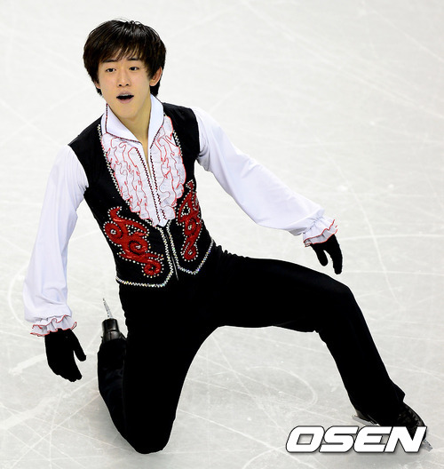 14일(한국시각) 오전 캐나다 온타리오주 런던 버드와이저 가든스에서 열린 2013 국제빙상경기연맹(ISU) 세계피겨선수권대회에서 남자 싱글 김진서가 쇼트 프로그램 연기를 펼치고 있다.