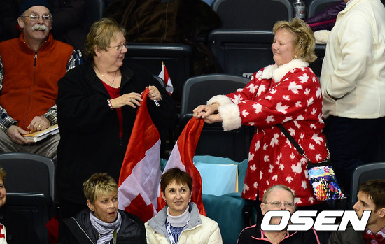 14일(한국시각) 오전 캐나다 온타리오주 런던 버드와이저 가든스에서 열린 2013 국제빙상경기연맹(ISU) 세계피겨선수권대회에서 경기장을 찾은 팬들이 정빙시간에 싸이 '강남스타일' 노래에 맞춰 춤을 추고 있다.