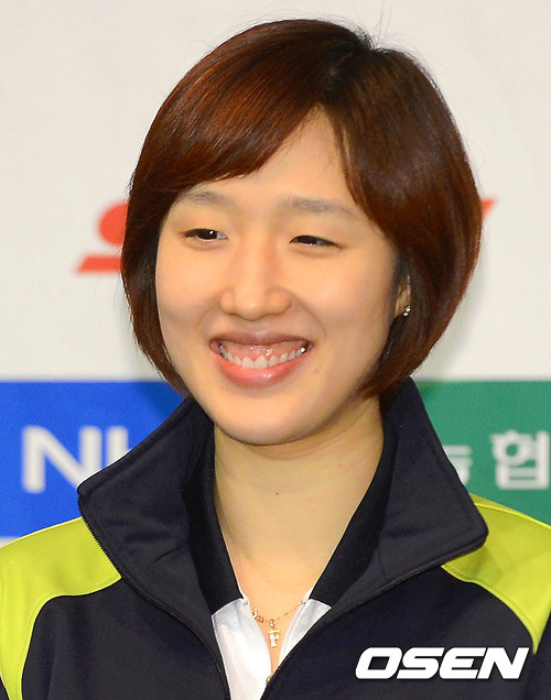 14일 오전 서울 청담 리베라 호텔 베르사이유홀에서 진행된 '2012-2013 V리그 포스트시즌 미디어데이'에서 현대건설 황엱가 미소짓고 있다.