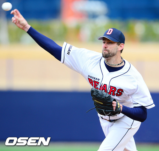 두산 선발 니퍼트가 힘차게 공을 뿌리고 있다.