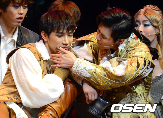 14일 오후 서울 충무아트홀 대극장에서 진행된 뮤지컬 '삼총사' 프레스콜에서 준케이와 김민종이 열연을 하고 있다.