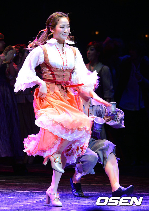 14일 오후 서울 충무아트홀 대극장에서 진행된 뮤지컬 '삼총사' 프레스콜에서 예은이 열연을 하고 있다.