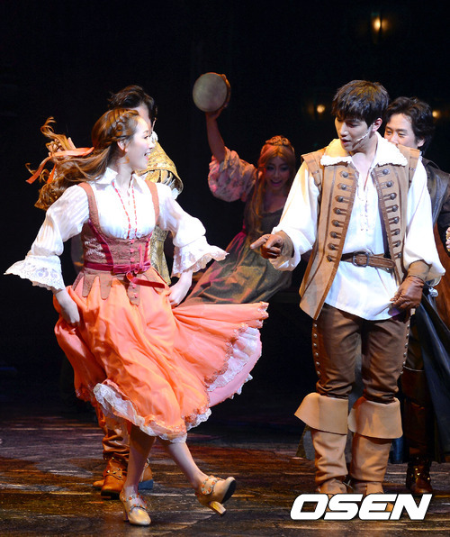 14일 오후 서울 충무아트홀 대극장에서 진행된 뮤지컬 '삼총사' 프레스콜에서 예은과 준케이가 열연을 하고 있다.