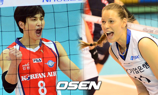 한국배구연맹은 14일 대한항공 김학민과 IBK기업은행 알레시아가 각각 남녀부 'NH농협 6라운드 MVP'로 선정돼 상금 100만 원의 주인공이 됐다고 발표했다.
