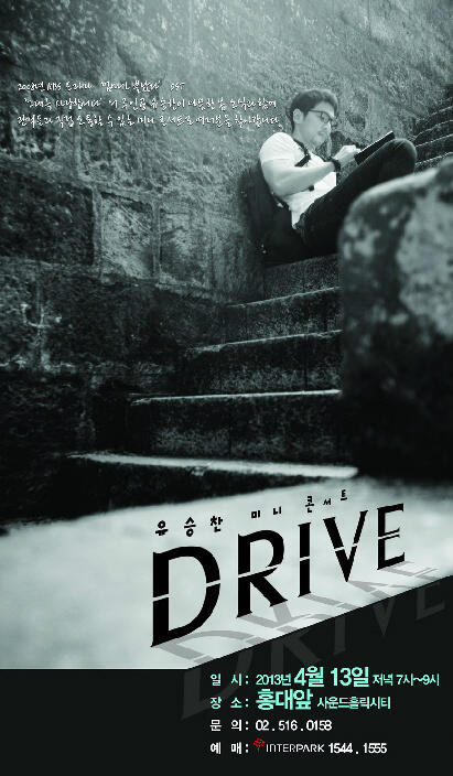 유승찬은 4월 13일 오후 7시 서울 홍대 사운드홀릭시티에서 첫 단독 콘서트 '드라이브'를 개최한다. 그는 이 자리에서 직접 찍은 여행 사진이 공개하고 자신이 불렀던 드라마 OST를 선보일 예정. 특히 관객과 함께 깜짝 이벤트를 진행할 계획인 것으로 알려졌다.