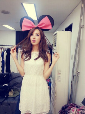 그룹 애프터스쿨의 주연이 머리에 미키마우스 귀를 달고 "사탕을 달라"며 애교를 부렸다.