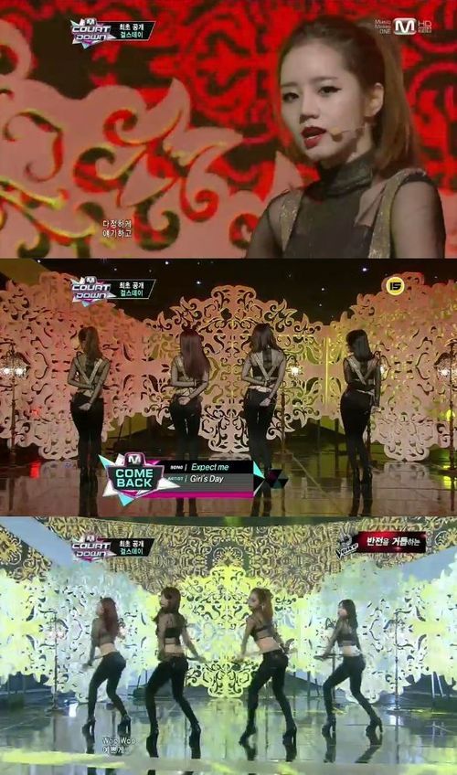 걸스데이는 14일 오후 6시 방송된 엠넷 '엠카운트다운'에 출연해 곡 '그녀를 믿지마'와 타이틀 곡 '기대해'를 열창했다.