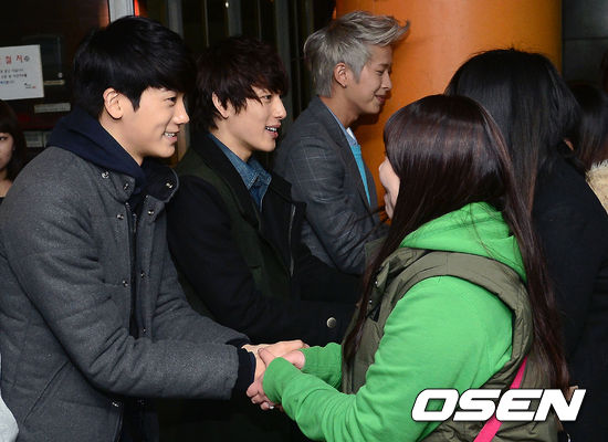 제국의 아이들 박형식, 시완, 하민우가 팬들과 악수를 하고 있다.